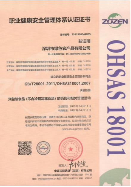 OHSAS18001 : 2007職業(yè)健康安全管理(lǐ)認證